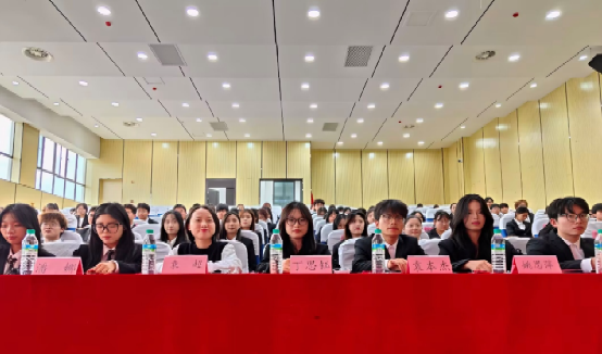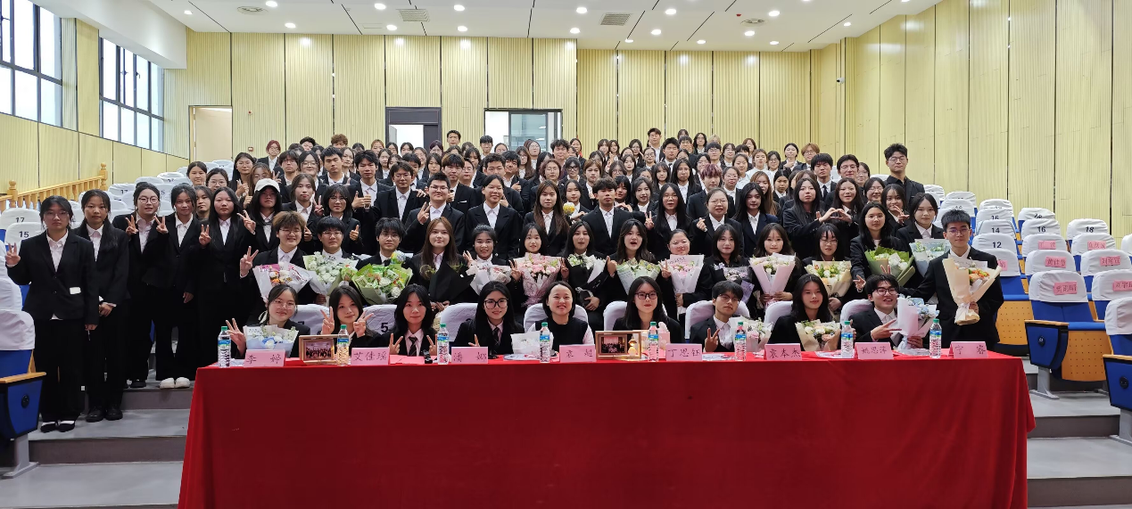 大会在全体参会人员齐声奏唱共青团团歌中拉开帷幕,庄严的歌声里交织着浓厚的责任氛围与蓬勃的青春气息。袁超首先上台发言,回顾了过去一年团学组织在思想引领、学风建设与活动开展等方面取得的扎实成果,并对未来发展提出建议与寄语,为学生组织工作指明方向。随后,姚思萍、潘娜、丁思钰依次发言,围绕各自工作领域分享经验、成果与感悟,并表达对新一届成员的殷切期望。大会进入到聘书颁发仪式,学生会、团总支、宣传中心的学生骨干依次上台,为新一届成员郑重授予聘书。新一届团学组织大三负责人代表李梓豪、张玉婷、萧宏楷分别上台发言,回顾过往奋斗历程,展望未来工作。议程接近尾声,“财经世家”主题视频的播放进一步凝聚了集体认同感与荣誉感。最后,全体参会师生合影留念,共同记录下这一薪火相传的重要时刻。
