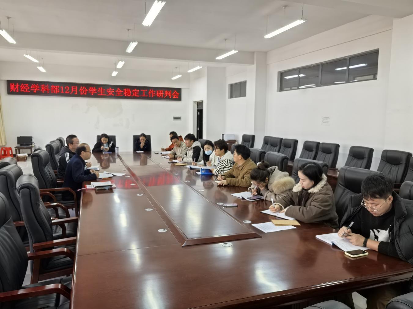 12月2日上午,财经学科部在财经楼321会议室召开12月份学生安全稳定工作研判会。财经学科部党总支书记曹国华,党总支副书记胡友君、学工办(就业办)副主任徐武汉及全体专兼职辅导员出席会议,会议由胡友君主持。