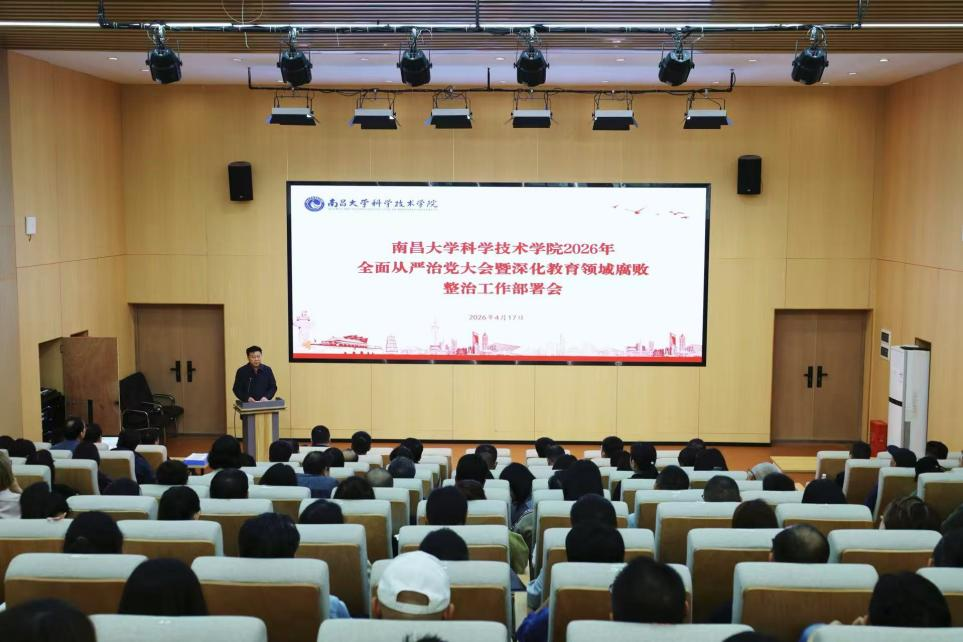 4月17日下午,学院召开2026年全面从严治党大会暨深化教育领域腐败整治工作部署会,深入学习贯彻二十届中央纪委五次全会精神、省纪委十五届六次全会精神、教育部深化教育领域腐败整治工作动员部署会精神和南昌大学全面从严治党大会暨深化教育领域腐败整治工作部署会精神,回顾总结2025年学院全面从严治党工作情况,分析学院全面从严治党存在的主要问题,布置2026年重点任务。院党委书记黄希红出席会议并讲话,党委副书记、院长徐健宁主持会议,纪委书记杨加明作党风廉政建设和反腐败工作报告,全体在家院领导、科级以上干部参加会议。