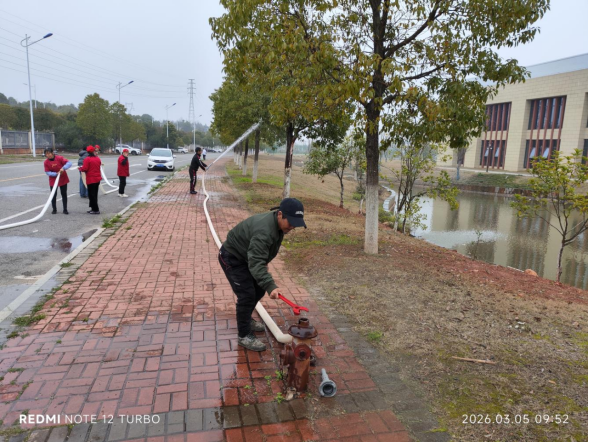 实训现场,保卫处消防专职人员详细讲解并演示了干粉灭火器、室内消火栓的使用方法与操作规范。全体参训人员分批次开展实操演练,工作人员全程指导,及时纠正不规范操作;院综治消防连队员全程做好辅助保障,充分发挥示范引领作用。