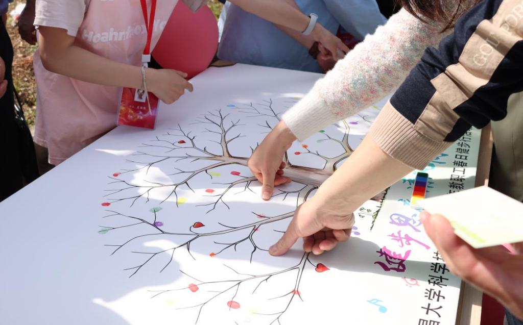 活动开始前,教职工在学院东门广场列队集合,下午三点,学院党委书记黄希红宣布活动开始,教职工们在欢声笑语中沿着路线健步行走。沿途共有4个打卡点,设置了各类趣味游戏、共绘春彩等环节,同时融入廉洁文化元素。教职工们有的参与游戏活动,有的在画布上留下绚丽印记,有的专注行走,呈现出一幅“快乐运动、同心倡廉”的春天画卷。