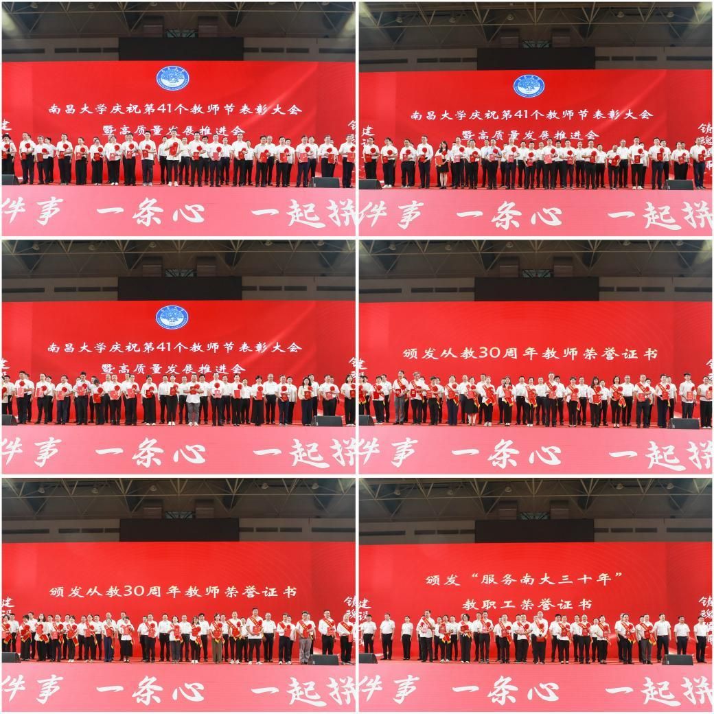 本网讯(记者朱文芳)“以教育家精神铸魂强师,谱写教育强国建设华章。”9月10日,学校召开庆祝第41个教师节表彰大会暨高质量发展推进会,进一步铭记关怀、牢记嘱托,认清形势、统一思想,找准方向、明确任务,激发动力、凝聚合力,以时不我待、只争朝夕的紧迫感形成攻坚“双一流”、推进高质量发展和建设“江西底色中国特色的世界一流大学”强大力量。
