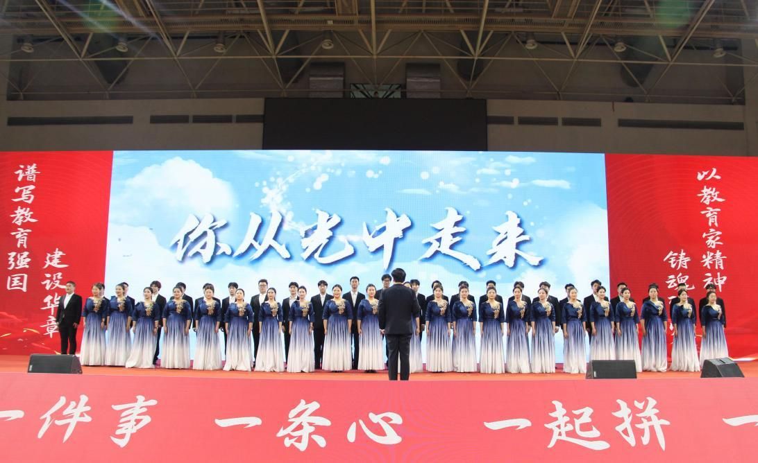 “你从光中走来,守护我小小的热爱……”学生合唱《你从光中走来》,用歌声表达对教师们深深的敬意与祝福,清澈的嗓音唱出了师恩如光、照我前行的真挚情感。歌声回荡整个会场,温暖在目光交汇中无声流淌。