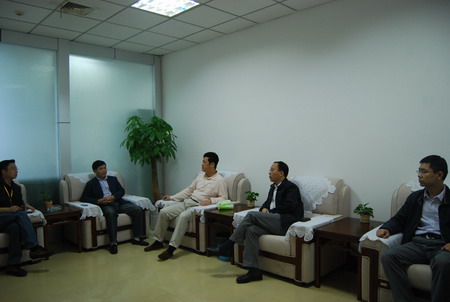 江西滕王科技有限公司副总裁余根强向李军红院长一行介绍了该公司的发展历程、基本情况以及未来的发展战略。并带领参观了该公司的动漫企业公共服务平台、产品技术中心、市场运营中心、互动体验厅等各个部门,李军红院长、曹文华副院长等人也深入了解了该公司的生产流程,切身体验了该公司的创新技术产品。在参观中,李院长结合我院学生实践能力与理论知识培养体系,不断提出问题,并要求我院负责老师前往考察,切身体验高科技的培养模式。在参观该公司的产品技术中心时,李军红院长一行看望了我院08届软件工程专业毕业生、现任该公司产品技术中心开发工程师的周希、毛建文等人,亲切握手交谈,询问工作情况,希望他们认真工作,经常回母校看看。参观完后,并与该公司董事长黄泽辉等相关人员进行了座谈。