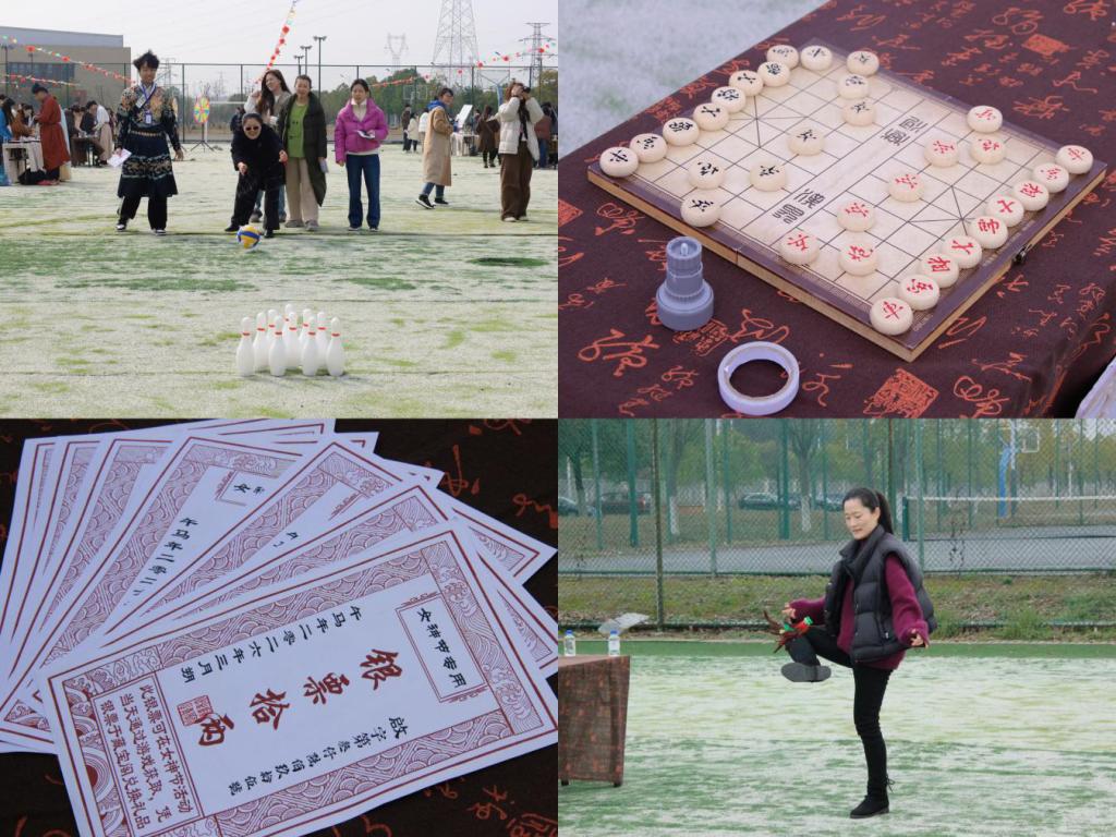 活动以游园闯关为载体,整合踢毽子、保龄球击打等体育项目与围棋对弈、象棋博弈等传统智力竞技项目,既是传承中华优秀传统文化的生动实践,也是践行体教融合、普及全民健身的具体举措,尽显人文巧思。活动现场,工作人员身着传统服饰,衣袂翩跹、古风盎然;教职工们化身潇洒“侠客”,热情参与、携手闯关,在轻松惬意的氛围中切磋比拼、赢取“银票”,凝聚起全院上下同心筑梦、共促发展的强大巾帼力量。