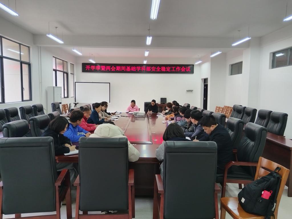 3月6日,基础学科部召开新学期安全稳定工作会,深入学习贯彻上级及学院关于安全稳定工作的相关要求,全面部署开学季及全国两会期间校园安全稳定工作。学科部领导班子成员、各教研室主任参加会议。
