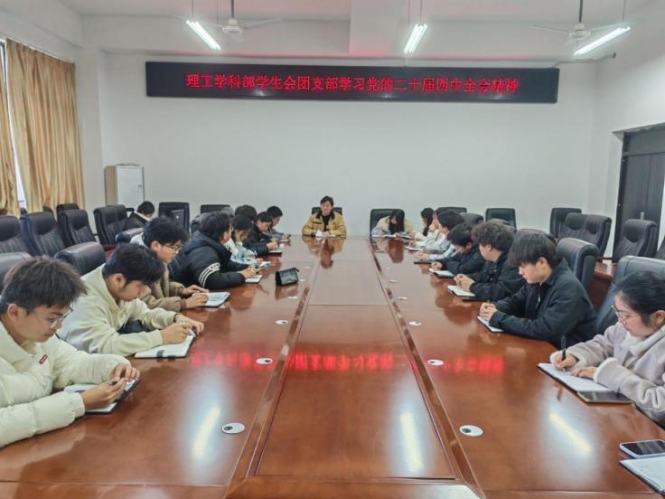 11月20日,理工学科部学生会团支部在理工信息楼B302召开党的二十届四中全会精神和全国教育大会精神专题学习会,引导团学骨干将青春理想融入国家发展大局。