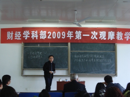 为进一步强化教学中心意识和质量意识,激励广大教师,特别是中青年教师提升教学水平,更好地服务广大学生,财经学科部于3月16日下午在学院南区化工楼421教室举行了2009年第一次教学观摩活动。学科部主任谢望礼教授主持了这次活动。教学观摩活动采取集体参与、轮流演示的方式,由教师自主选择教学内容,以30分钟为讲授时间,将最精彩的教学内容和方法呈现给大家。
