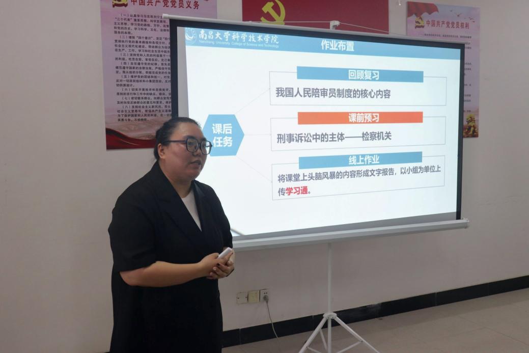 艺术系教师王倩雯带来了一堂精彩的《商业空间设计中的门头设计》课程,她结合生活中的实例让大家直观地感受到了门头设计的重要性和魅力,同时鼓励同学将非遗文化传承起来,融入到设计中,为传统文化赋予新的生命力;政法系教师蒋琼在讲解《中华人民共和国刑事诉讼法》时围绕“人民陪审团选任程序”与“陪审标准”两大核心,搭建了兼具法理深度与实践指导性的课程框架,从课程介绍入手结合视频实时热点进行讲解,通过问题引导导入,提出难点并深入分析,条理清晰地为大家呈现了一堂高质量的课程。