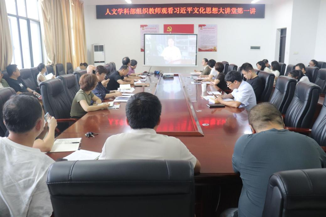 9月25日下午,人文学科部于人文楼321会议室召开全体教师大会,通过“理论学习+示范课展示”的双轨模式,组织教师观看习近平文化思想大讲堂第一讲,举行学科部青教赛预赛暨示范课展示活动。