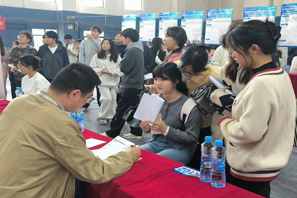 双选会现场氛围热烈,人头攒动。毕业生们积极踊跃投递简历,主动与用人单位沟通交流,了解相关企业的岗位需求、薪酬待遇及职业发展等情况。用人单位深入解答学生疑惑,耐心介绍企业基本情况、相关岗位工作的技能要求等信息,现场进行初步面试与简历筛选,并与部分同学达成初步聘用意向。