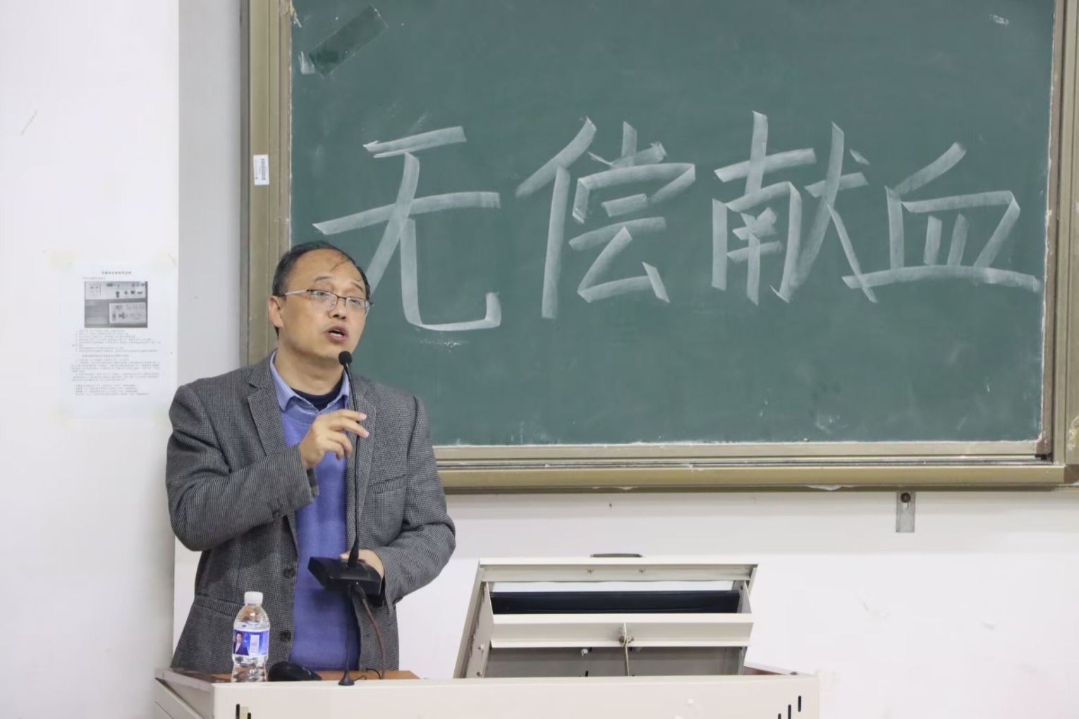 宣讲会上,欧阳金桥主任围绕无偿献血的安全性与科学依据展开详细讲解。他不仅强调了无偿献血的政策保障和社会意义,还以自身的献血经历,呼吁在场师生积极参与这项公益事业,共同筑牢生命防线。