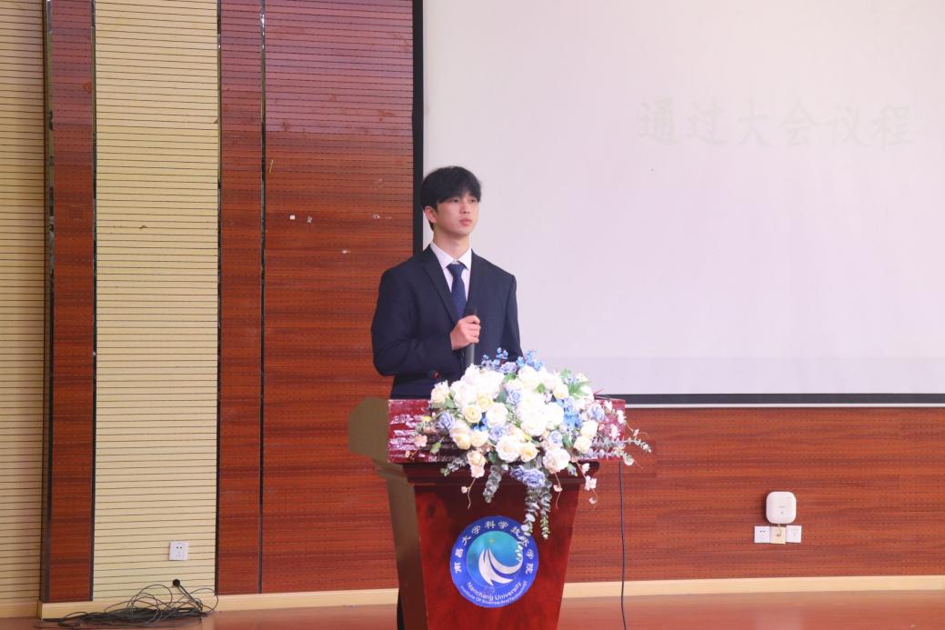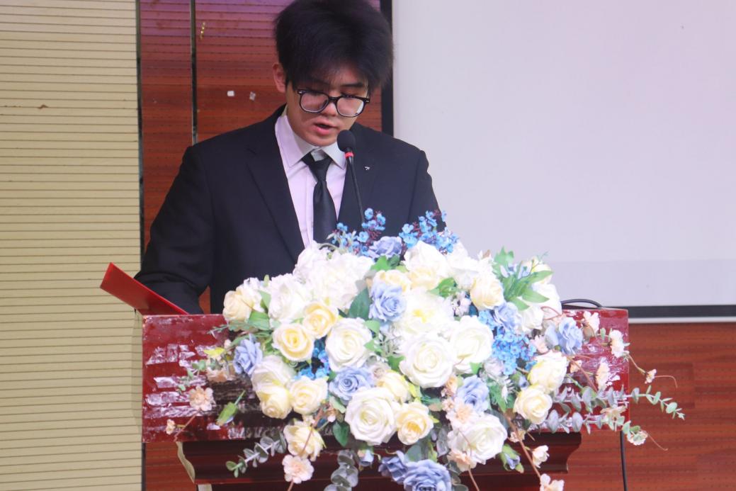 肖金长首先向全体代表致以问候与祝愿,他充分肯定了人文学子过去所做出的贡献以及代表们的重要作用,并提出“坚定理想信念、专注学业成长、勇于担当奉献”三点期望,鼓励同学们珍惜时光、积极建言献策,共同助力校园发展。随后,信息学科部代表受邀登台致贺词。他对本次会议的召开表示热烈祝贺,向与会青年代表们致以诚挚的问候,并高度肯定了共青团工作在凝聚青年力量、服务校园发展中发挥的重要作用。