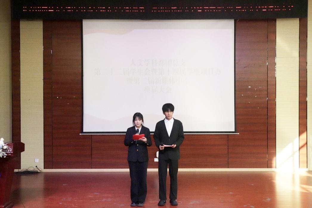 11月22日下午,人文学科部于大学生活动中心315报告厅举办了第二十二届团总支学生会暨第十四届团总支学生项目办暨第二届新媒体中心换届大会。曾少琦、肖晨欣担任主持人。