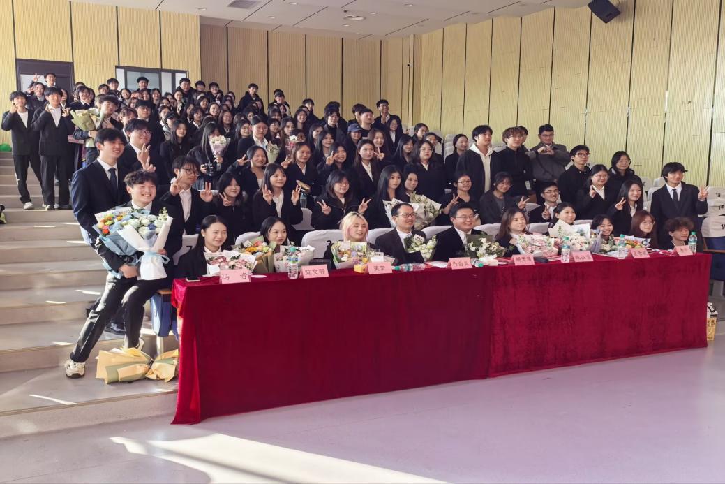 薪火相传,砥砺前行。大会在激昂奋进的青春宣言与进军号角中拉开帷幕。杨天浩致辞,他对组织成员的辛勤付出表示肯定,并向往届成员的努力与新成员的加入表达了感谢与欢迎。随肖金长依次为第二十一届团总支学生会的优秀部长与小组组长、第十三届学生项目办的优秀项目办主任,以及第一届新媒体中心的优秀部长颁发荣誉证书并合影留念,并为离任的主席团、书记处成员及新媒体中心主编颁发荣誉证书,充分肯定他们在任期内的贡献与付出。