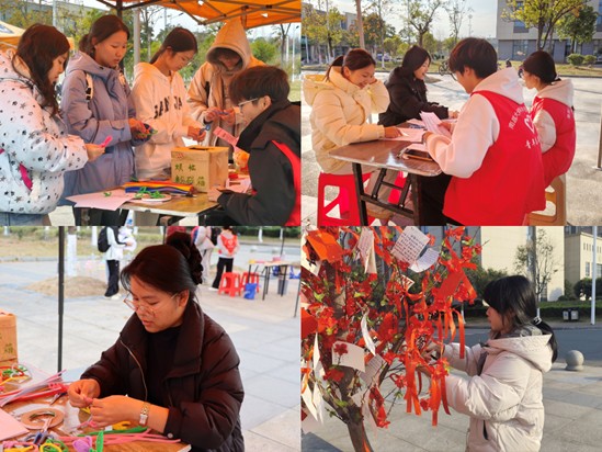 作为青年志愿者协会深耕多年的特色品牌活动,校园内活动延续“趣味互动+价值引领”的长效育人模式,设置多项兼具教育意义与参与感的环节。其中“匿名的‘艾’”祝福环节成为亮点,学院学生将满载关怀与祈愿的红丝带系于枝头,汇聚成象征爱与奉献的红色风景线,引导学生厚植仁爱之心,让思政教育在潜移默化中浸润心灵,推动志愿精神在校园落地生根。