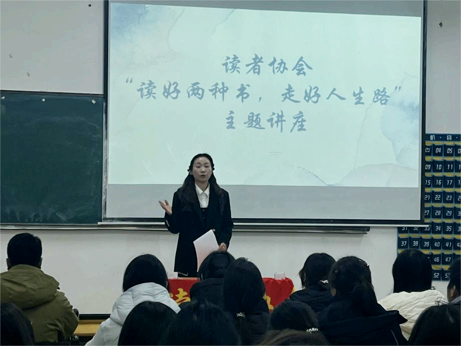 2025年12月16日,学院图书馆组织读者协会和秋水文学社联合举办“读好两种书,走好人生路”主题讲座。