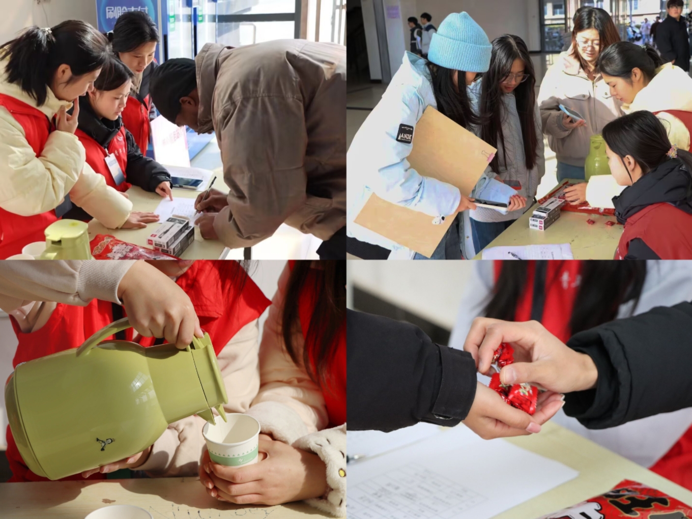 学院青年志愿者协会于1月5日至15日期间,在明德楼南大厅设立“考试周爱心志愿服务站”。