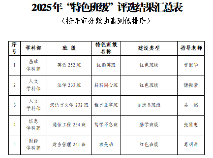 近日,学院圆满完成2025年“特色班级”立项评审工作。本次评审对17个申报专业班级材料进行严格审核,经学科部推荐、交叉评审,党委学生工作部(学生工作处)综合审议及公示,最终5个班级成功获批立项,其中红色班级3个、励学班级1个、自选类班级1个。