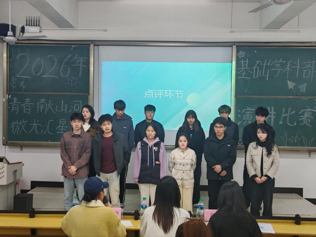 3月27日,基础学科部在明德楼225教室开展“青春献山河,微光汇星河”演讲比赛。