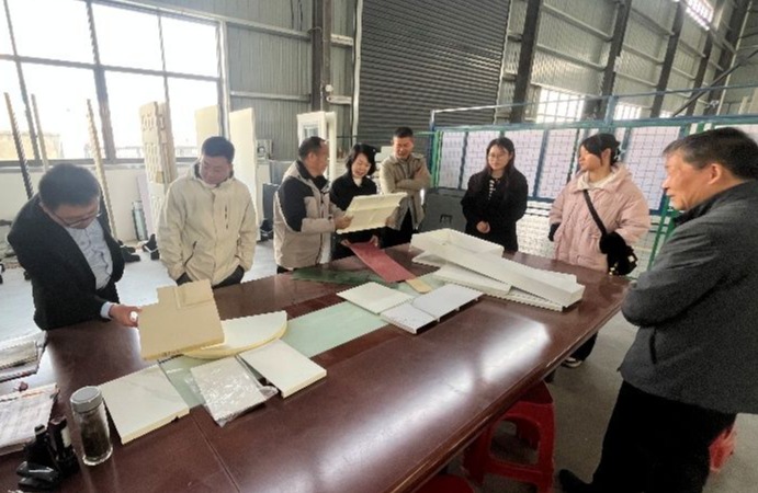 在九江共青城市江西立立联新材料科技有限公司,师生们参观了全自动新材料家居门生产线。该企业的自动化设备覆盖了从新材料原料生产加工到成品生产包装的全流程,其“以智提质”的发展理念引发师生热议。信息学科部教师还与企业技术骨干就自动化生产线集成应用、生产数据实时监测等行业前沿技术展开了深入交流,为后续专业课程优化提供了实践依据。
