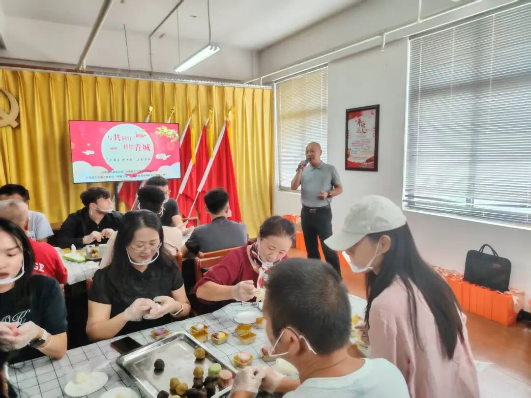 在活动现场,鄢俊彬首先为大家送上浓浓的节日祝福,并与大家亲切交流,一同制作、分切、品尝月饼。