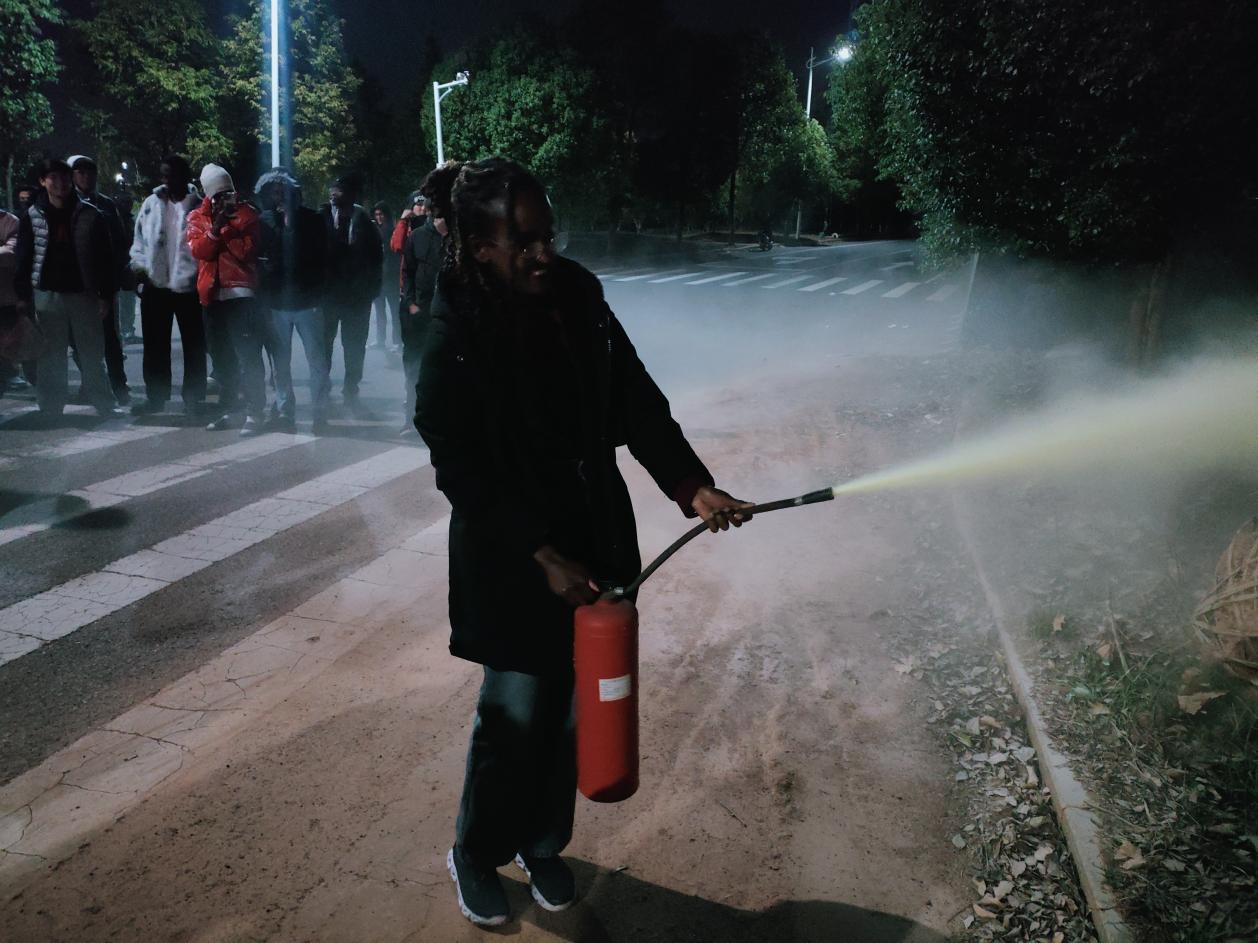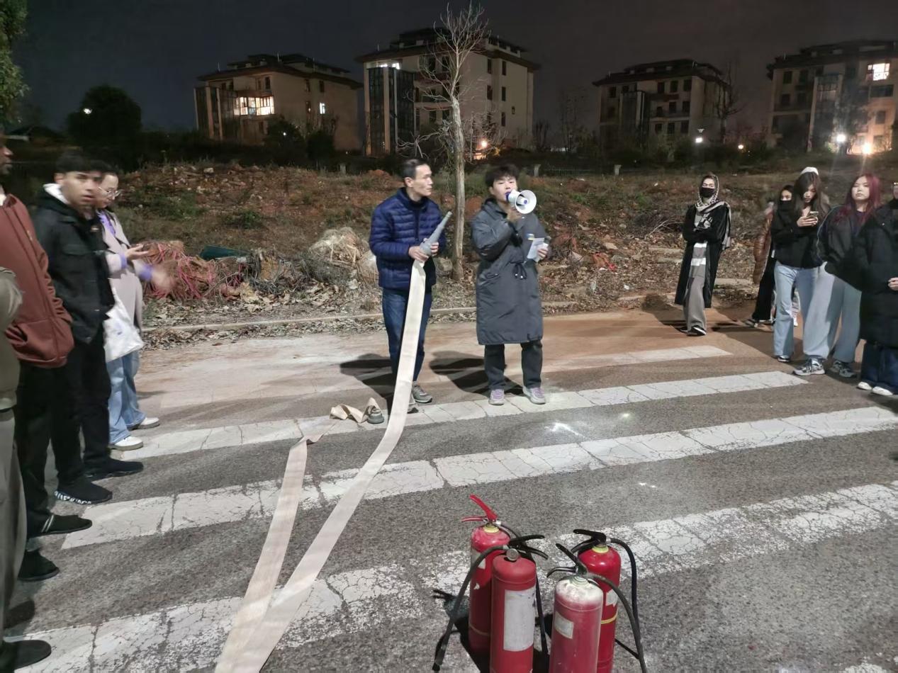 为深入贯彻落实学院关于安全生产的重要指示精神,切实保障师生生命财产安全,11月20日17时30分,在保卫部的指导与协助下,国际交流部面向在校留学生组织开展了消防疏散及灭火演练活动。继续教育部(国际交流部)主任胡宾、副主任周依林、宋云君老师及辅导员何复苏共同参与。
