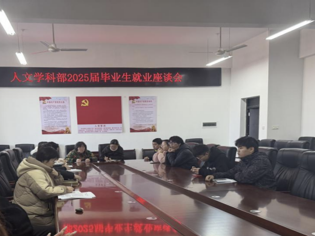 4月3日上午,人文学科部于人文楼321会议室举行了2025届毕业生就业座谈会,人文学科部党总支书记肖轮刚、分管教学副主任寇嫒丽、学工办就业办副主任吴悠以及毕业班辅导员代表,2025届毕业生代表参加了此次座谈会。