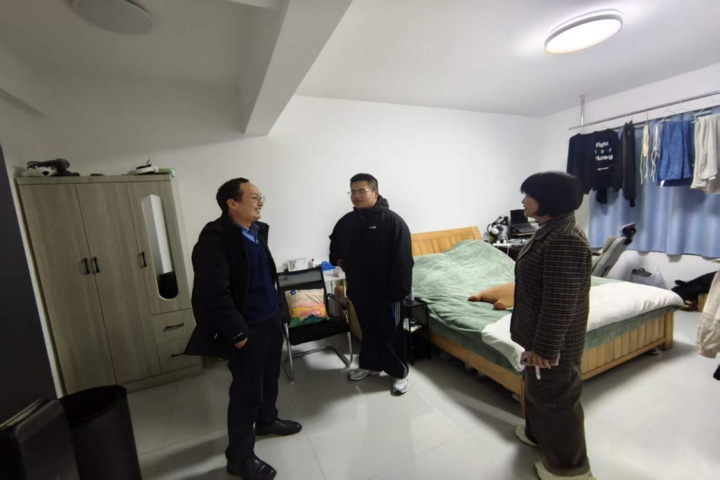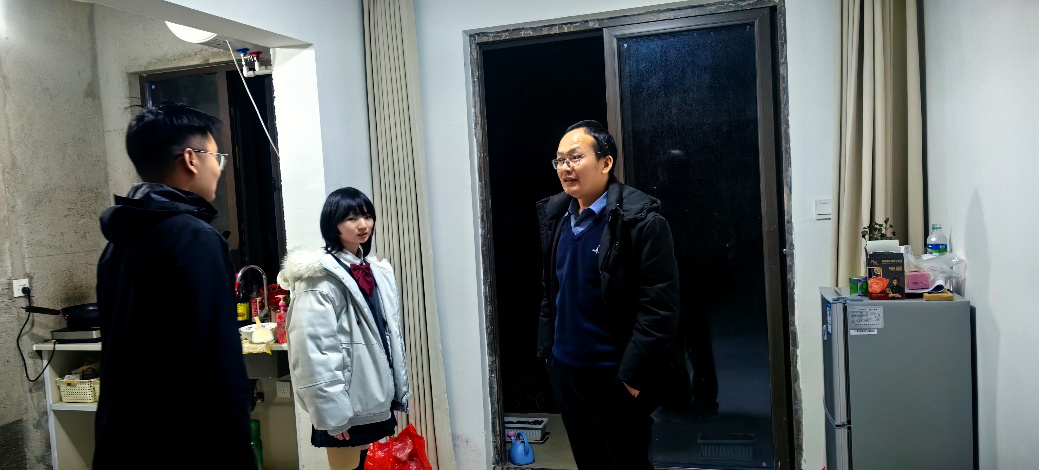 走访队伍前往学生校外租住的住所,实地看望学生及其亲属。老师们与学生及其亲属亲切交流,详细了解其日常生活起居、开学返校及校外兼职情况,叮嘱注意校外住宿安全,合理安排作息,按时完成学业任务,保持良好状态。学科部领导在走访中询问了学生校外租房的原因,细致了解其在校生活与心理状况,对学生的身心健康状况十分关心。走访过程中,肖金长亲切叮嘱学生,在校外住宿期间务必严格遵守相关管理规定,时刻注意用水用电安全,切实保障自身安全;同时暖心嘱咐学生,如在学习生活中遇到任何困难,要第一时间与辅导员沟通联系,学院会全力给予关心与帮助。辅导员也再三提醒学生保持通讯畅通,共同维护安全有序的住宿环境,让学生安心、家长放心。