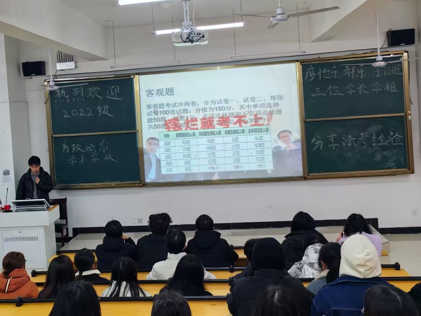 为帮助学生明晰法考备考方向、提升备考效率,助力新一届法考生顺利通过考试,2025年12月25日上午9时,南昌大学科学技术学院人文学科部政法系于明德楼339教室举办了“2022级学长学姐法考经验交流会”。其中,人文学科部政法系负责人吴金莲主持会议,廖怡乐、郝乐、余佰旺作为分享嘉宾,2023、2024级有备考意愿的法学专业学生均参与本次活动。