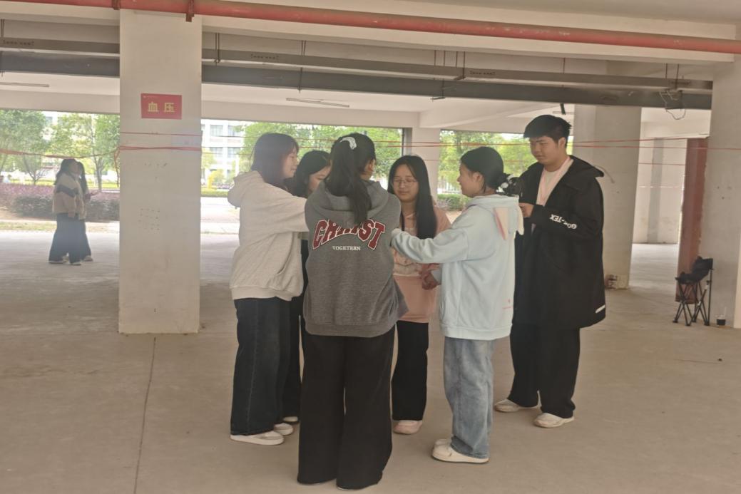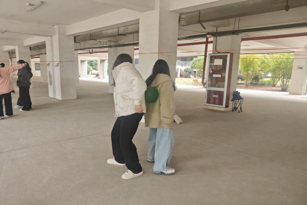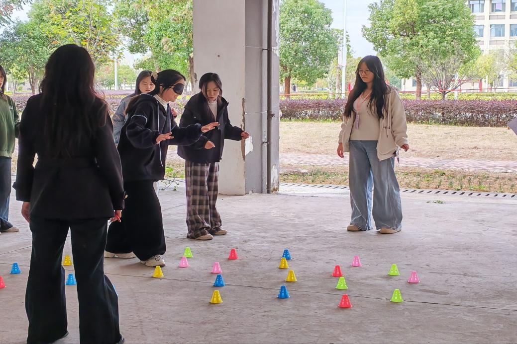 决赛现场氛围热烈,多个互动项目围绕“信任与协作”展开。“盲趣双关”环节率先点燃气氛,蒙眼选手通过触摸室友服饰细节、发型轮廓等特征辨认同伴,过程中既有快速识别的默契,也有迟疑确认后的欢笑,充分体现寝室成员间的熟悉与信任;“盲人指路”环节中,指路者以清晰的手势与语气指引队友规避障碍,即便出现小失误,选手们也相互鼓励、重新出发,传递出温暖的协作氛围。