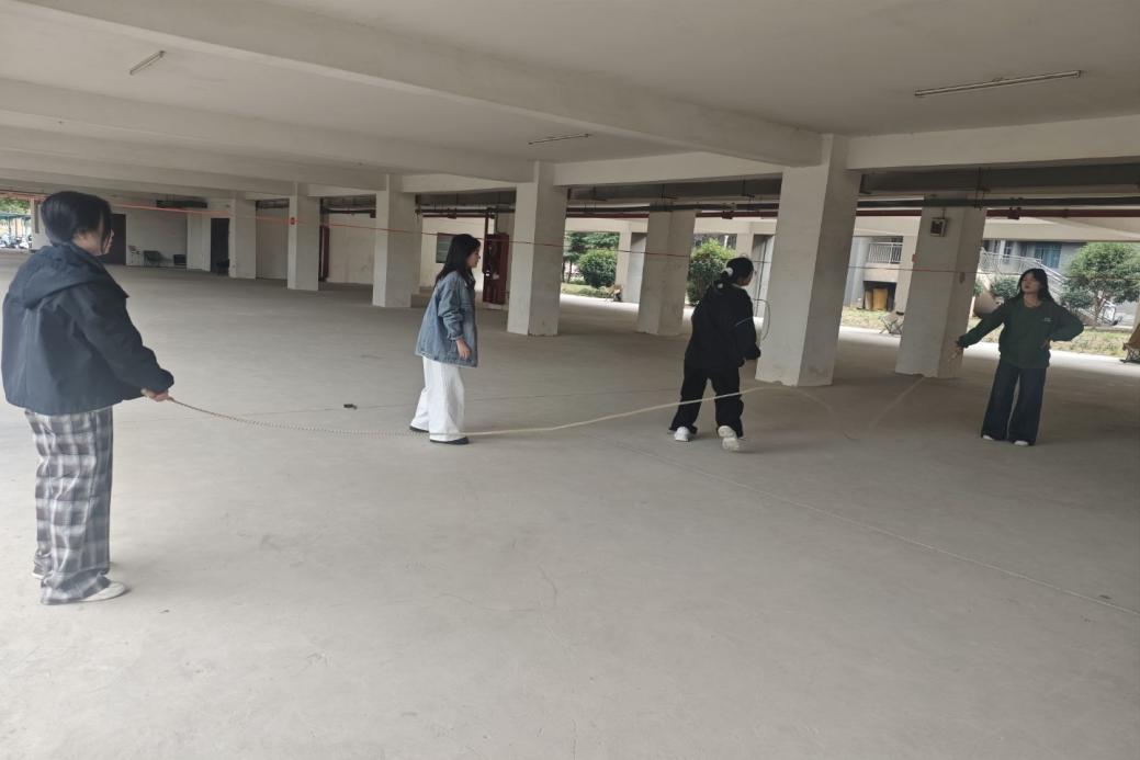 随后的“寝”密接力环节,参赛搭档背靠背夹气球前行,面对气球滑落等情况,大家迅速调整状态、默契配合,在欢笑中完成挑战;“解手链”环节里,成员们随机牵手形成“人结”,凭借高效沟通与默契配合,最快小组仅用一分钟便成功解开,展现出强大的团队协作能力;“同心跳绳”环节中,队员们同步起跳、相互鼓劲,连续十五次起跳的完成让现场欢呼不断。