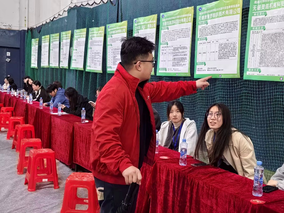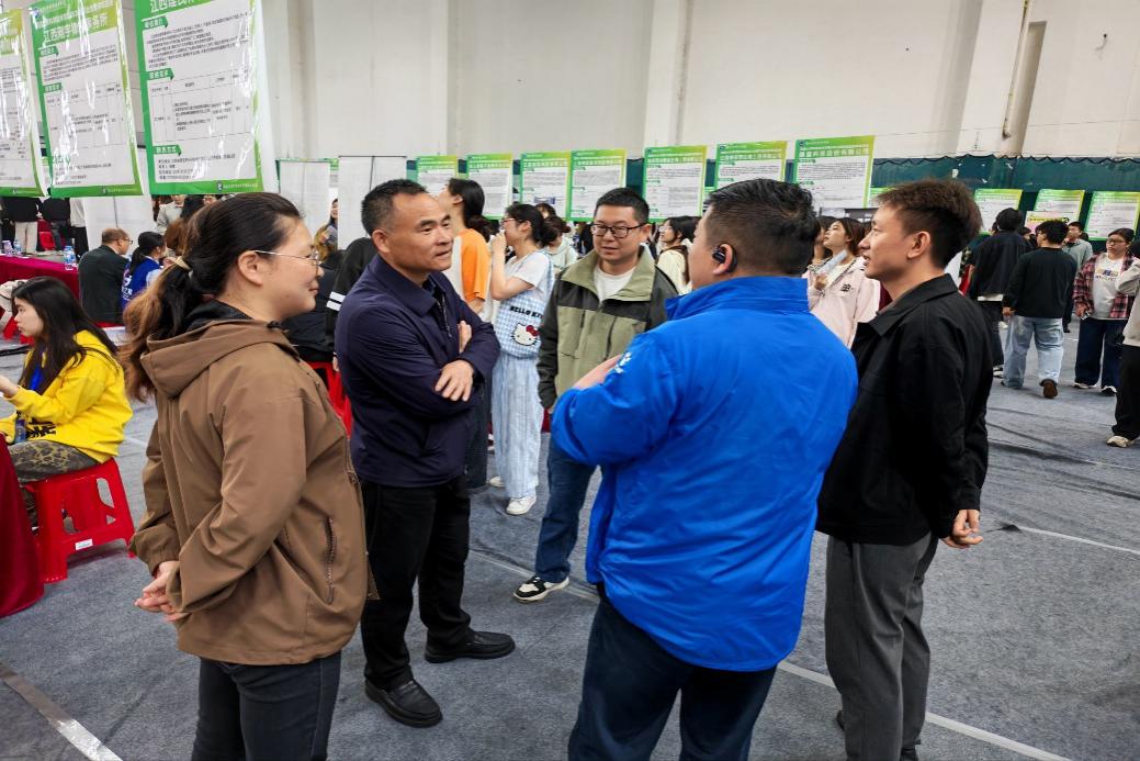 4月16日上午9时,南昌大学科学技术学院2026届毕业生春季双选招聘会如期举行。为进一步做好毕业生就业服务,人文学科部党总支书记肖轮刚,党总支副书记肖金长带领毕业班辅导员走进招聘现场,通过实地查看、现场推荐、面对面交流等方式,为毕业生求职提供“零距离”指导与支持。