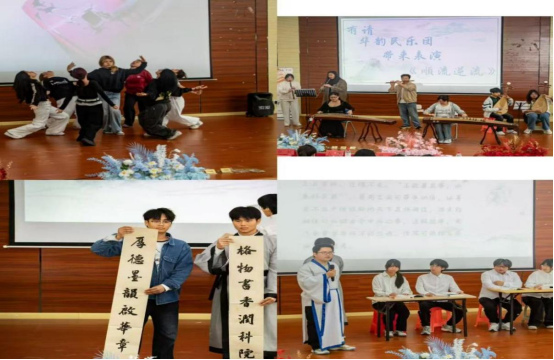 活动期间,学院劲舞团、华韵民乐团和书法协会先后上演劲歌雅乐、挥毫泼墨等精彩节目,与经典主题朗诵《学而不厌》相得益彰,书声、琴声、歌声,声声入耳。最后,图书馆读者服务部主任、读者协会指导老师潘秋蓉向大家汇报过去一年的捐书成果,同时向全体师生发出了捐书倡议。当场收到学生捐书174册,后续将在图书馆、食堂、宿舍等地设点,接收师生捐赠。