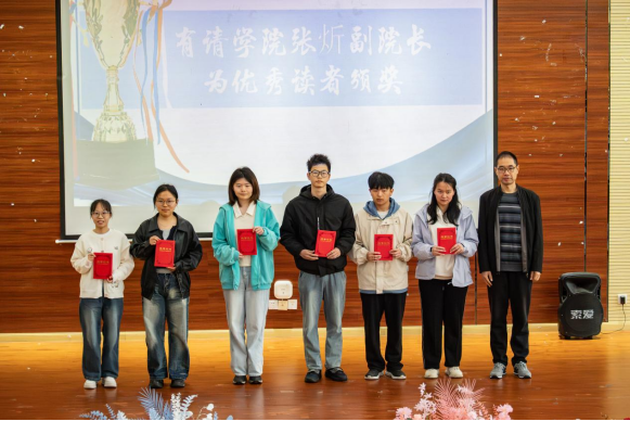 活动伊始,为表彰阅读先进、树立阅读榜样,张炘副院长为肖文熙等优秀读者代表颁奖,勉励同学们继续勤学善读,争当表率,营造浓厚的阅读氛围。随后,院团委书记万雯、副书记周旋,图书馆馆长黄俊华、副馆长曹凤兰先后为读者协会优秀社团骨干和成员颁发荣誉证书,肯定学生骨干的责任与担当。