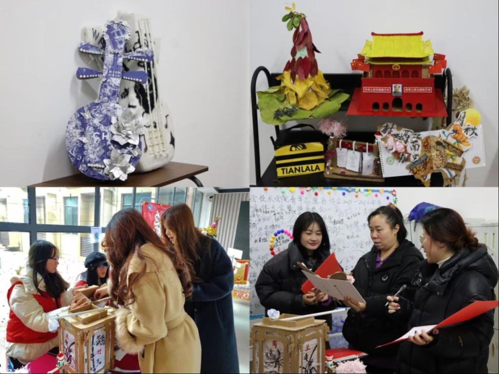 本次大赛评分采用“线上大众投票+线下评委评审”相结合的方式,线下展览于12月25日至26日在大学生活动一楼顺利举办。展览区内,以废旧物品为核心材料改造而成的作品整齐陈列,奶茶袋剪裁改造而成的“琵琶”、以旧衣物制作而成的新装,每一件作品都凝结着巧思妙想,吸引众多师生驻足观看。这些作品不仅赋予了废旧物品全新的艺术生命,更是学院学生践行绿色生活方式的生动写照。