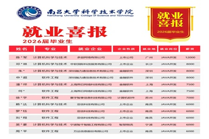在南昌大学科学技术学院2026届毕业生就业工作中,信息学科部计算机科学与技术、软件工程等优势专业多名应届学子凭借深厚的专业积淀、精湛的技术实力和突出的职业素养,成功收获多益网络、中软国际、亚信科技等业内标杆企业抛出的橄榄枝,斩获优质技术岗位。充分彰显了我院在应用型、复合型人才培养方面取得的显著成果与核心竞争力。
