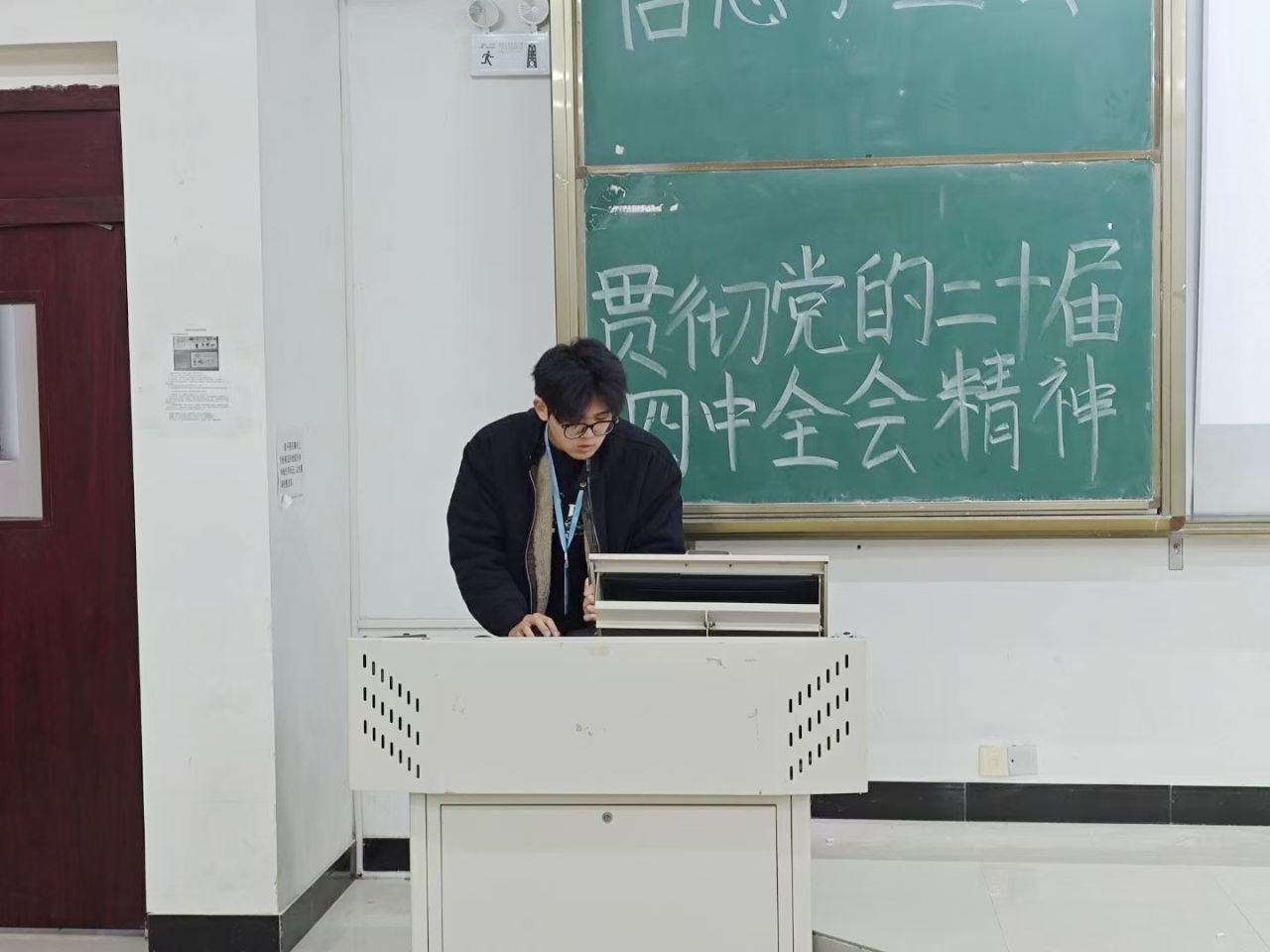 会议开篇,第二十一届主席团成员孔子豪发表主题讲话,围绕“学习贯彻党的二十届四中全会精神”展开深入阐述。他从“坚定理想信念”、“树立正确价值观”等六个方面,为全体成员带来了深刻的思想启迪。同时,为进一步提升工作效率,规范执行标准,孔子豪还系统讲解了借教室、批摊位等标准化工作流程,为各部门后续工作的规范化开展提供了清晰指引。