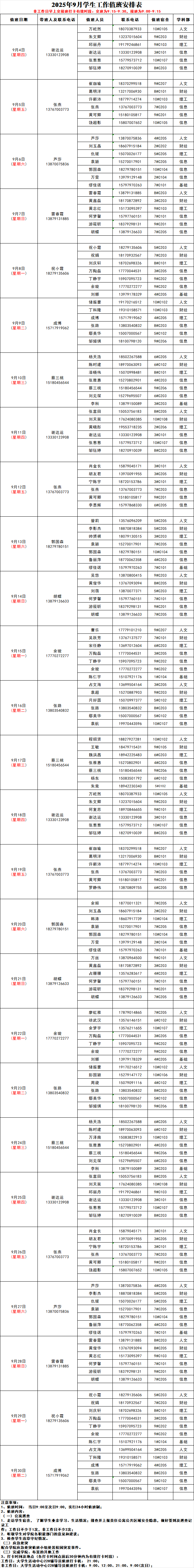 【学生工作值班安排】2025年9月学生工作值班安排表