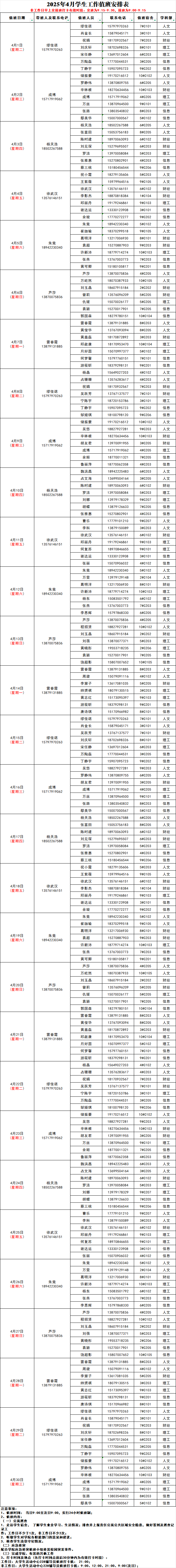 【学生工作值班安排】2025年4月学生工作值班安排表