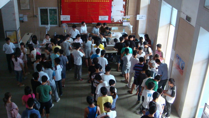 8月28日,是2011学年老生开学报到注册缴费的第一天,注册工作在早上8点正式开始。上午7:50分,同学们就来开始到机械楼排队刷卡缴费注册。井然有序的队伍、饱满的精神状态,同学们脸上洋溢着笑容,充满着对新学年的期待与信心。