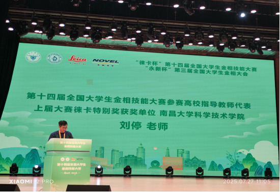 本届大赛开幕式上,我院理工学科部学科竞赛名师工作室负责人刘停教授作为特约嘉宾发言并分享经验,他指出:“金相不仅是材料科学的基石,更是一门将严谨科学与精细操作融为一体的艺术。”“南昌大学科学技术学院始终致力于为莘莘学子搭建优质的教学平台和实践沃土,去洞察材料的奥秘,探寻微观之美,为培养高素质工程技术人才注入源源不断的活力”,其精彩发言得到中国教育新闻网报道。闭幕式上,因指导竞赛成绩突出,罗永洪老师受邀为团体第四至第七名获奖单位颁奖。这份荣誉凝结同学们的奋斗,也是对学院办学实力与人才培养质量的肯定。