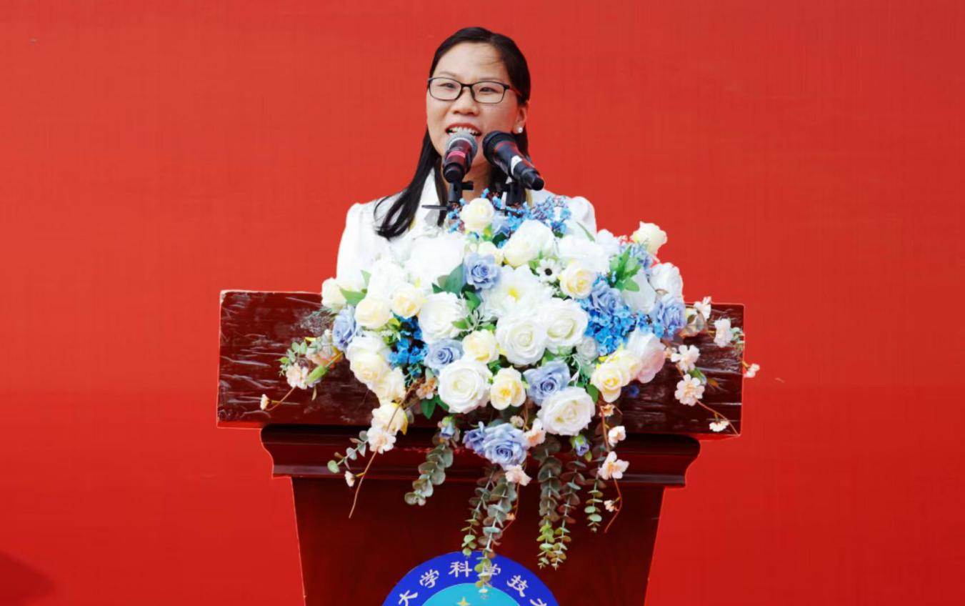 基础学科部李玉华作为教师代表登台发言,她以“为学当有 实,逐梦需笃行”为主题,结合自身教学经历向新生传授治学与 做人的道理,鼓励同学们秉持“读书养正气,问学不忘国忧”,用知识塑造品格,以担当回应时代。