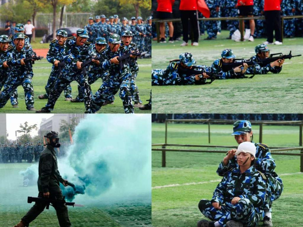 军事技能展示环节,国旗护卫队动作精准划一,参训新生眼神坚毅如炬。各项特色科目轮番上演,匕首操凌厉有力、战术表演灵活敏捷、创伤救治专业规范、突袭演练紧张逼真,一招一式干净利落、刚劲十足,博得阵阵掌声。
