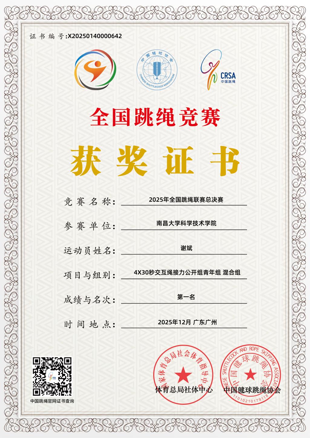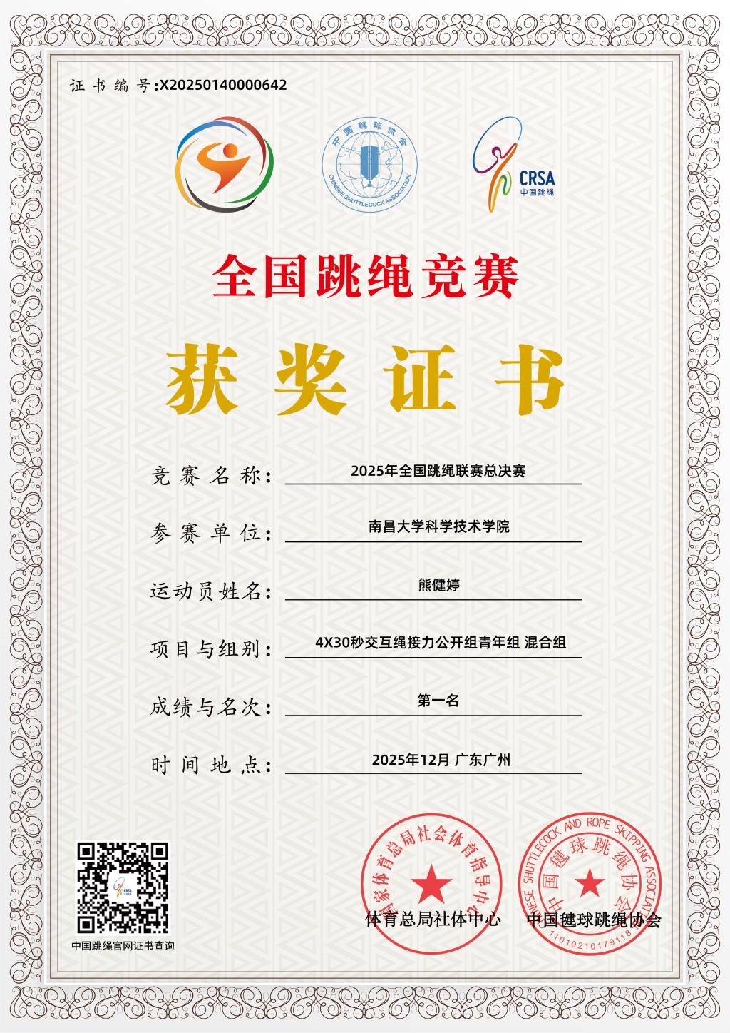 【喜报】我院在2025年中国国际跳绳公开赛暨全国跳绳联赛总决赛荣获世界第三名和全国总决赛第一名