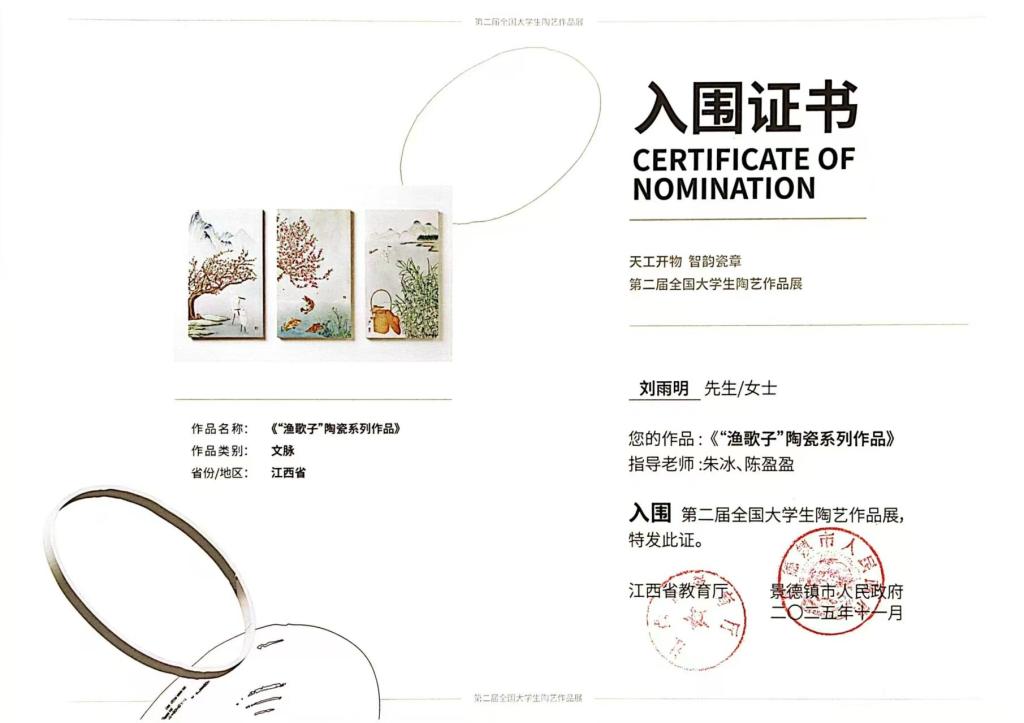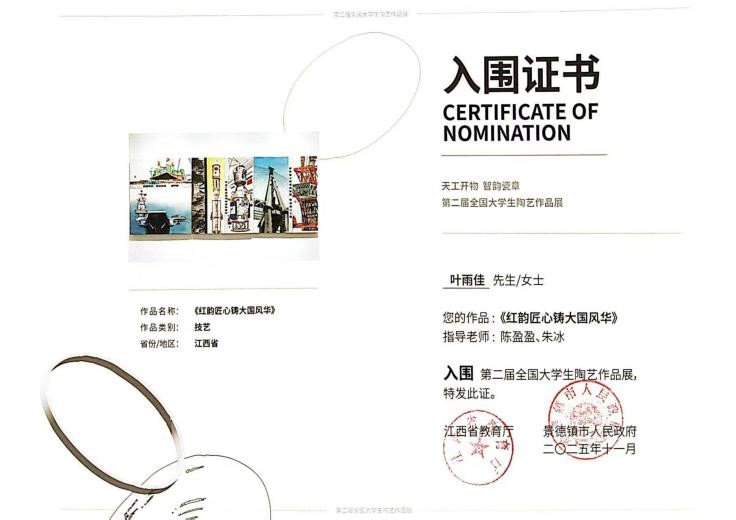 近日,从江西省教育厅传来喜讯,由其主办的“天工开物・智韵瓷章”第二届全国大学生陶艺作品展入围名单正式公布,学院艺术系学子凭借扎实的专业功底与创新的艺术表达,两件作品成功入围,将亮相这场全国性陶艺艺术盛宴。