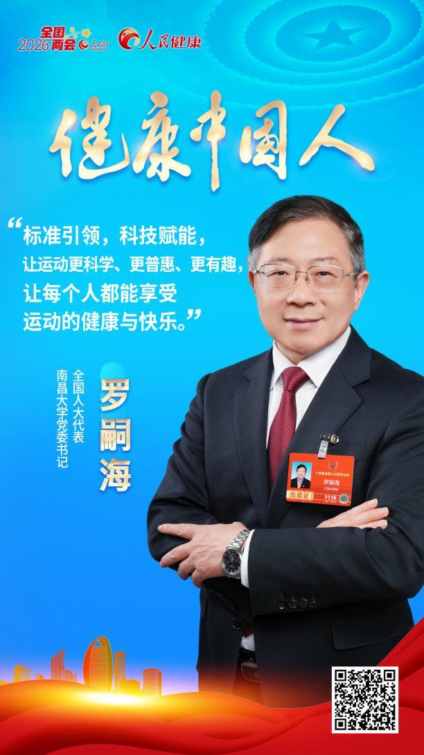 编者按:近日,2026全国两会“健康中国人”系列圆桌座谈之“数智科技赋能全民健身新场景”专场在人民网人民健康举行,全国人大代表、南昌大学党委书记罗嗣海受邀参加座谈,提出“标准引领,科技赋能,让运动更科学、更普惠、更有趣,让每个人都能享受运动的健康与快乐。”的观点。详情如下: