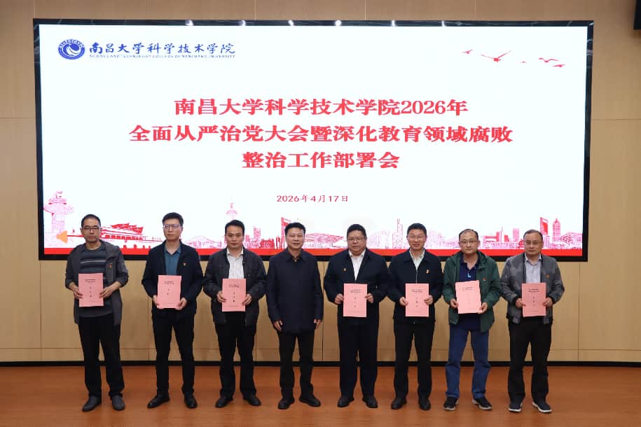 4月17日下午,学院召开2026年全面从严治党大会暨深化教育领域腐败整治工作部署会,深入学习贯彻二十届中央纪委五次全会精神、省纪委十五届六次全会精神、教育部深化教育领域腐败整治工作动员部署会精神和南昌大学全面从严治党大会暨深化教育领域腐败整治工作部署会精神,回顾总结2025年学院全面从严治党工作情况,分析学院全面从严治党存在的主要问题,布置2026年重点任务。院党委书记黄希红出席会议并讲话,党委副书记、院长徐健宁主持会议,纪委书记杨加明作党风廉政建设和反腐败工作报告,全体在家院领导、科级以上干部参加会议。